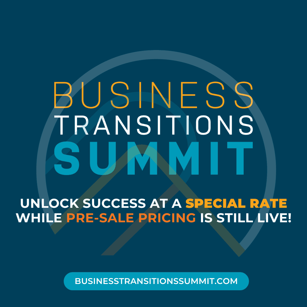 As a business owner, you\'ve poured your heart and soul into your company. But have you thought about what comes next? The Business Transitions Summit is your roadmap to success. The Business Transitions Summit is designed by business owners, for business owners. Whether you plan to sell, pass your business to the next generation, or […]