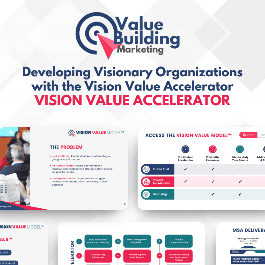Marketing Resources Articles Doer to Leader Assessment Read More → Creating a Kickass Team That Smashes Goals and Wins Big with the Vision Value Accelerator Read More → Creating a Kickass Team That Smashes Goals and Wins Big with the Vision Value Accelerator Read More → The Incredible Value of Building Your Brand Around Processes & People Read More → Clear Vision, Messy Goals: Why You Need to Let Your Goals Be Big, Bold, and a Little Crazy Read More → The Marketing Strategy Accelerator: Grow Your Business Fast Read More → Get Your Sales Sh!t Together: Why Sales and Marketing Go Hand-in-Hand Read More → Vision and Values: The Compass for Business Success (A ValueBytes Series) Read More → 7 Marketing Problems Every Business Runs Into (and 3 Ways to Solve Them) Read More → 4 Powerful Marketing Activities to Increase Value & Maximize Your Sale Price Read More → Preparing Your Business to Exit: A ValueBytes Series Read More → Meet Your PiPP—What Matters Most to Your Business? Read More → « Previous 1 2 3 4 5 6 Next » Get Started